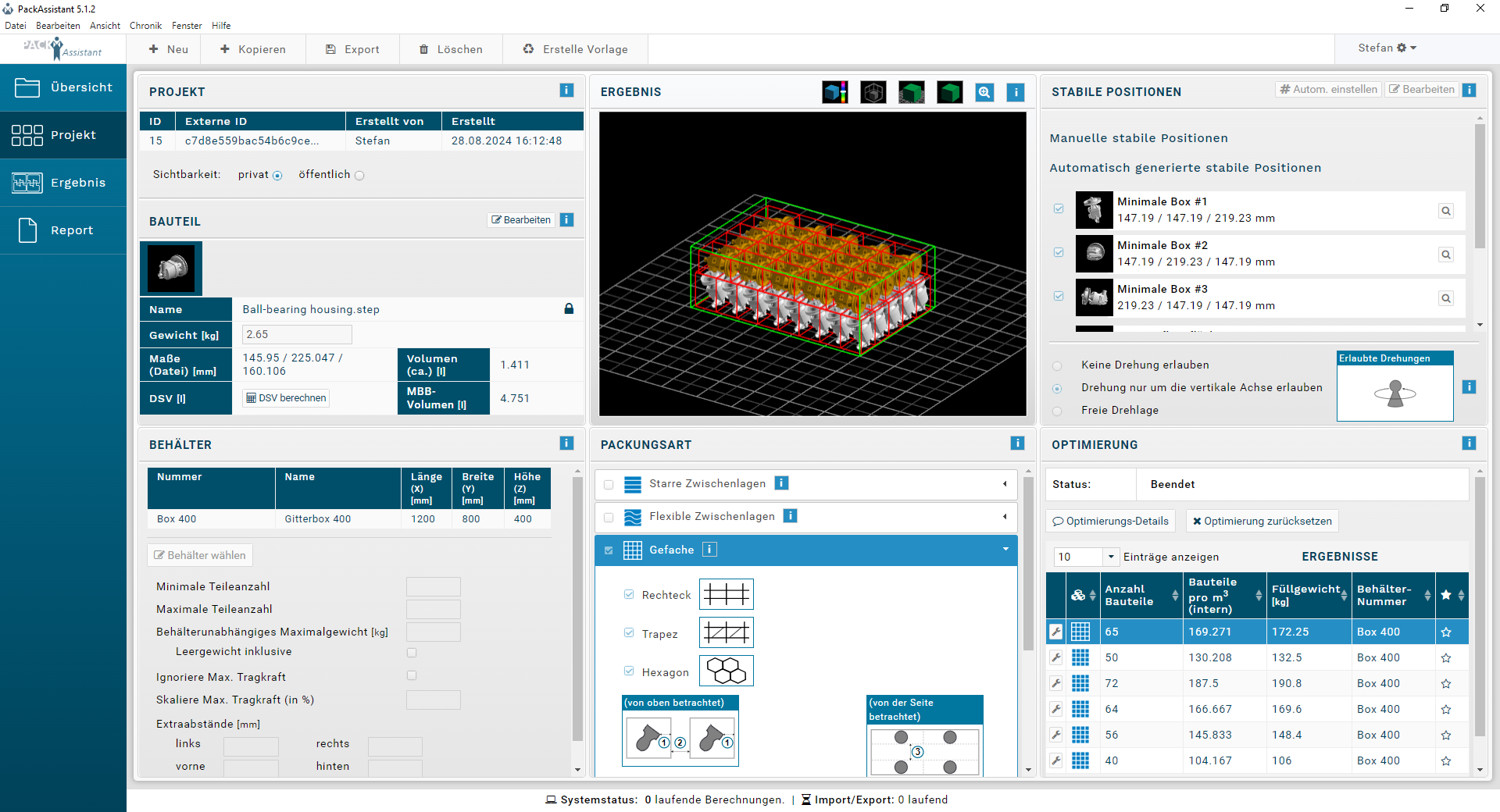 - Um die Stabilität des Behälters zu gewährleisten, kann man für die Teile stabile Positionen festlegen.