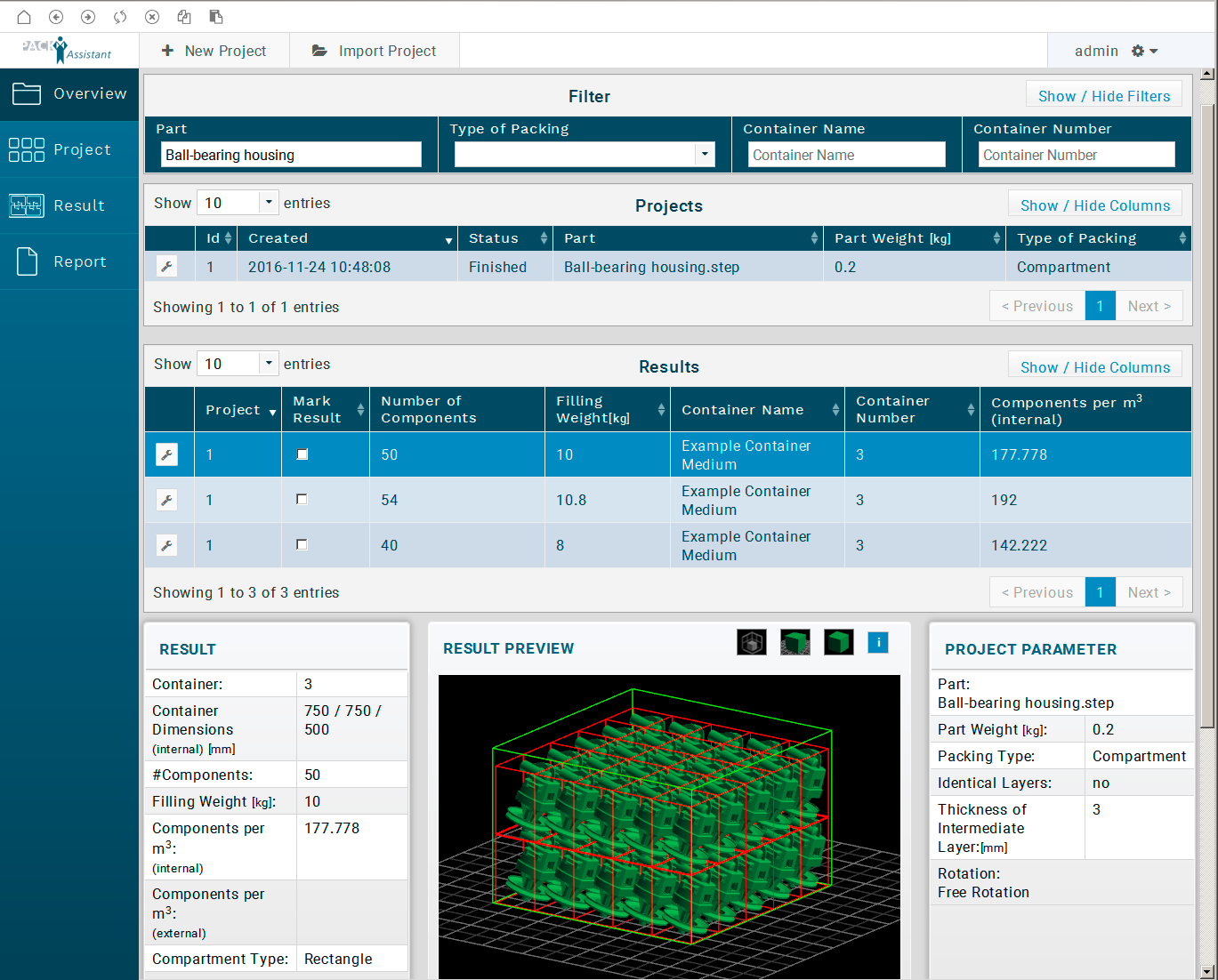 - Possibility to select the minimum distance between parts, the container base, walls, and compartments.