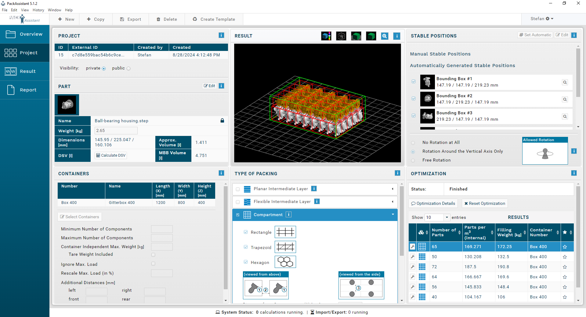 - To facilitate the container’s stability, it is possible to define stable positions for the parts.