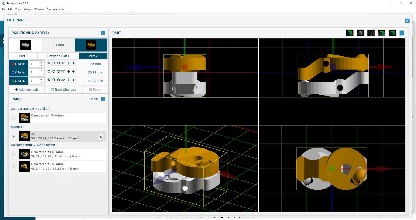 - Calculation of the minimum volume bounding box of a single part.